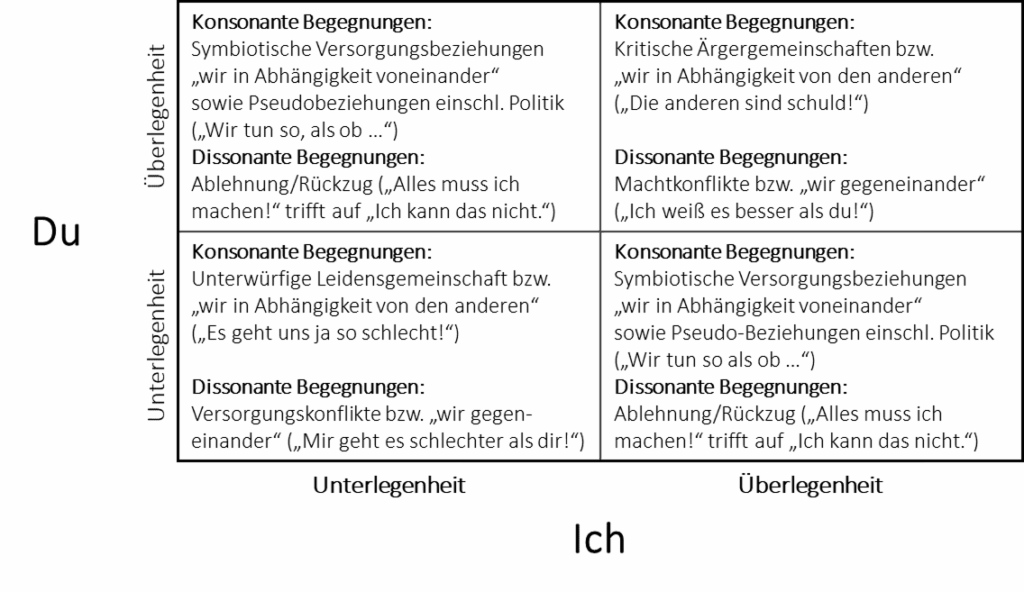 Quelle: Korpiun, M. (2024). Innere Beziehungsbilder und ihr Einfluss auf die Gestaltung von Beziehungen. Eine relationale Erweiterung des Verständnisses von Grundpositionen. In: Zeitschrift für Transaktionsanalyse, 41. Jg., H. 4, S. 324.